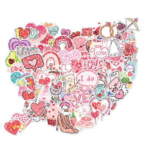 50個プロモーションカスタム装飾ステッカーピンクバレンタインデー接着ラベル印刷ダイカットステッカーラップトップウォーターカップ用